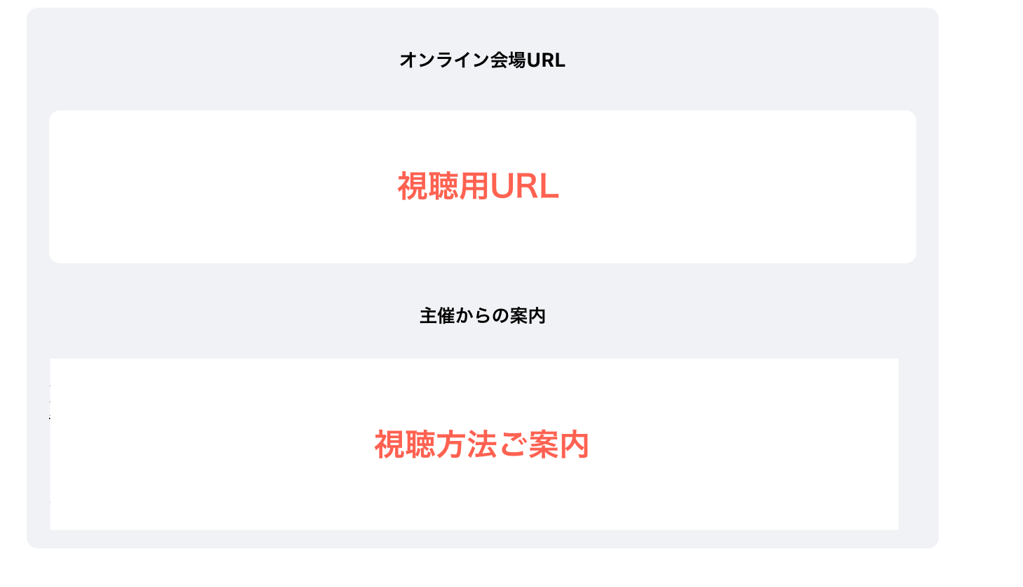 参加登録後、こちらのページに以下の案内が表示されますので、